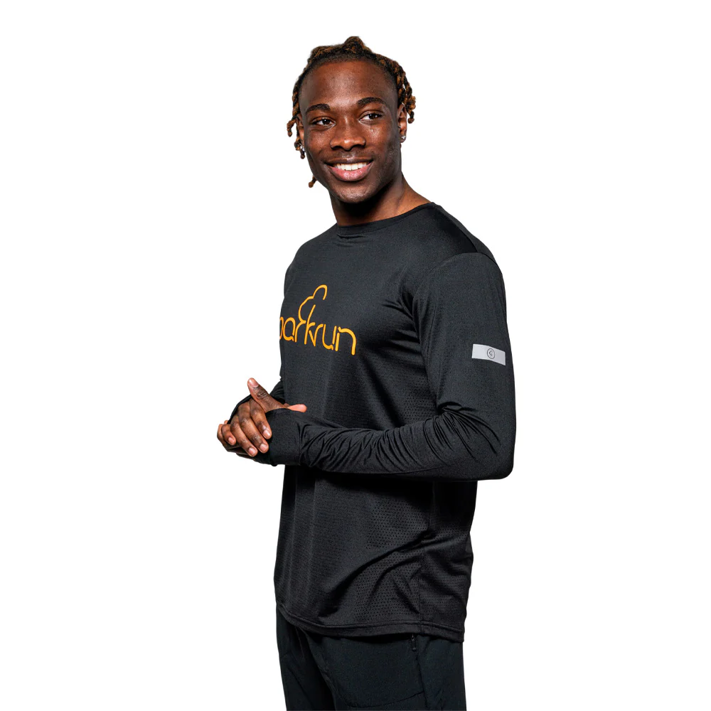 The parkrun long sleeve t-shirt is made from moisture management, breathable stretch fabric designed to enhance your performance.