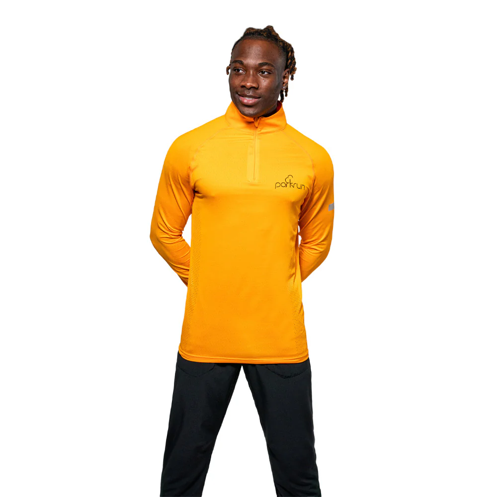 The parkrun 1/4 zip top is made from moisture management, breathable stretch fabric designed to enhance your performance.